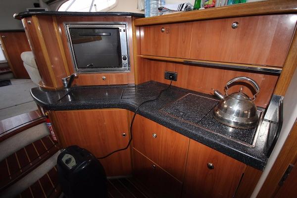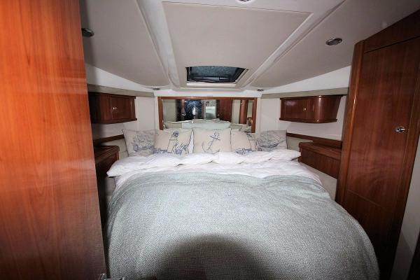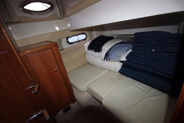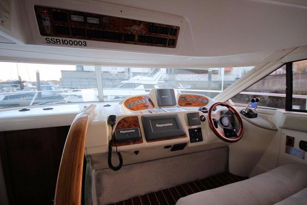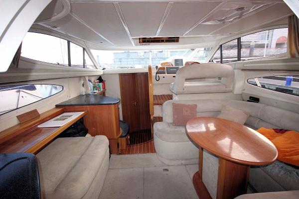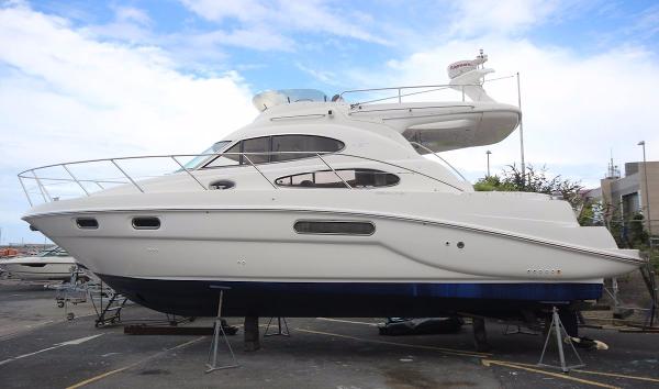 This Sealine F37 comes with a fully comprehensive cruising specification including bow & stern thrusters, radar, autopilot, heating to name but a few. Accommodation on board for 6 in two cabins. Inventory Bowthruster Stern thruster Electric windlass Shore power Battery charger Hot water heater Trim tabs Cockpit aft closing canopy Teak cockpit flooring Flat screen TV in saloon Accommodation Six berths in two cabins. One heads Galley Gas cooker Gas oven Fridge Electronics Raymarine E90 plotter screen with repeater on flybridge Raymarine Autopilot Raymarine Tridata Log & Sounder Raymarine VHF Manufacturer Provided Description The superb Sealine F37 Flybridge motor yacht incorporates a wealth of highly innovative features to provide maximum enjoyment from an extremely safe and sure shaft-driven cruiser. The flybridge helm seat cleverly stores the table and also rotates to provide all-round seating for entertaining and dining. A large sunbed and sliding hatch to the cockpit complete the perfect layout. Molded steps safely lead to the cockpit which has transom seating and optional pullout seats for dining around the table. A large lazarette provides excellent storage and the deep, full-width bathing platform with swim ladder and shower allows safe access to the cockpit. The full cockpit canopy stores away inside the flybridge molding. The deck fittings, safety rails, windlass, and walkways have all been designed to provide ease and safety in use. The accommodation includes two double cabins both with en suite toilet and shower, a saloon with U-shaped seating and an adjustable dining table (a further double berth), and a unique breakfast / drinks bar with adjustable club seats. The lower galley has a hob, oven / grill, fridge, sinks, plus ample preparation areas and cupboards. Disclaimer Disclaimer