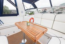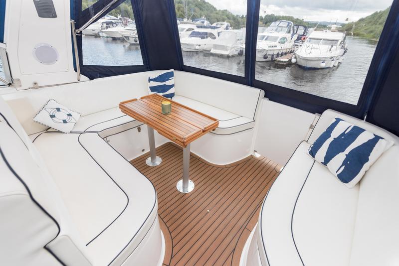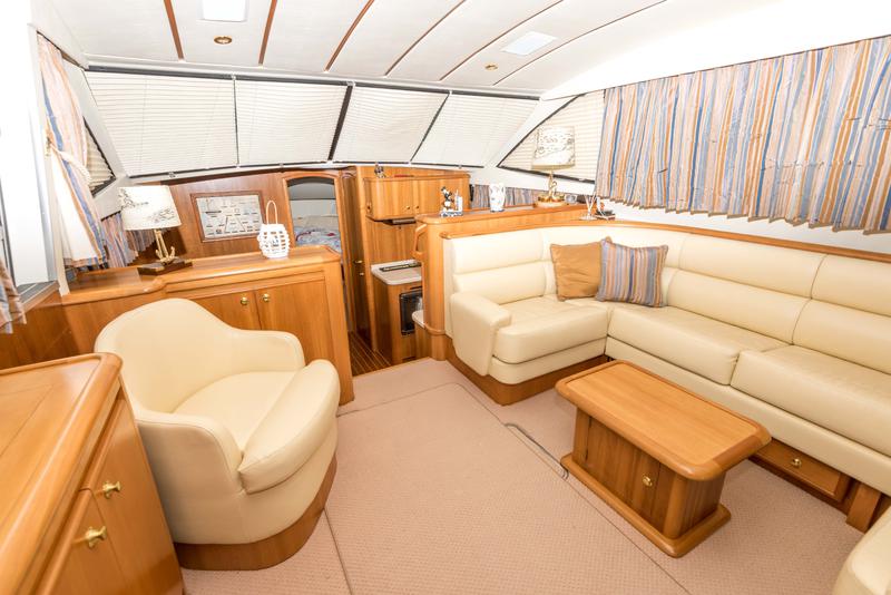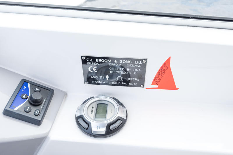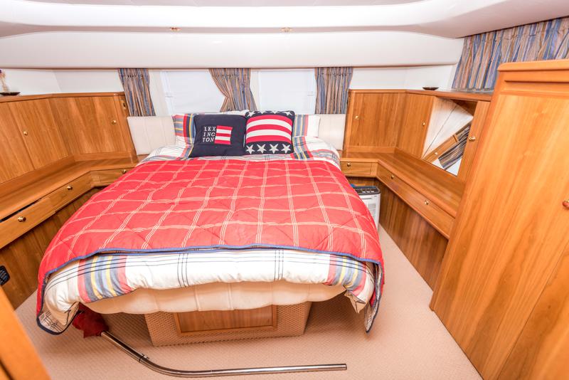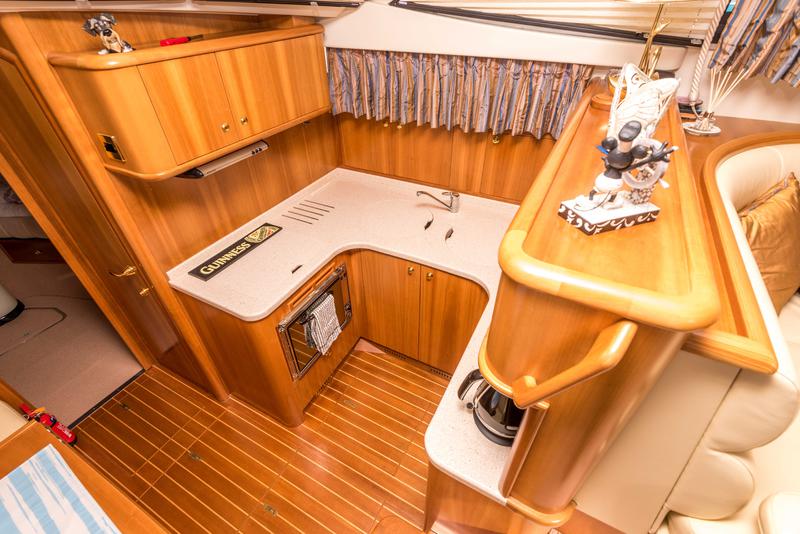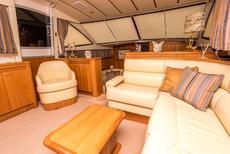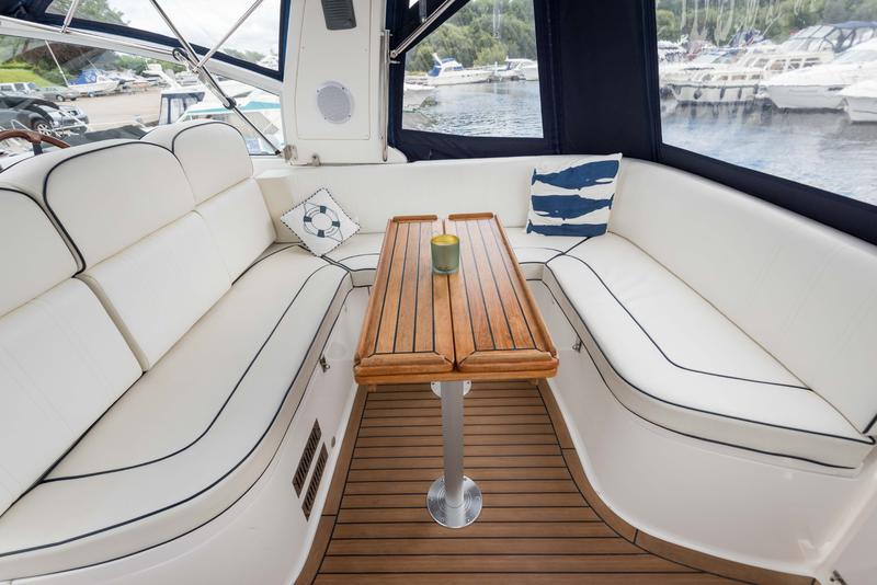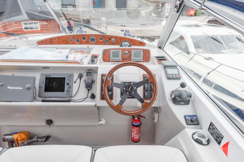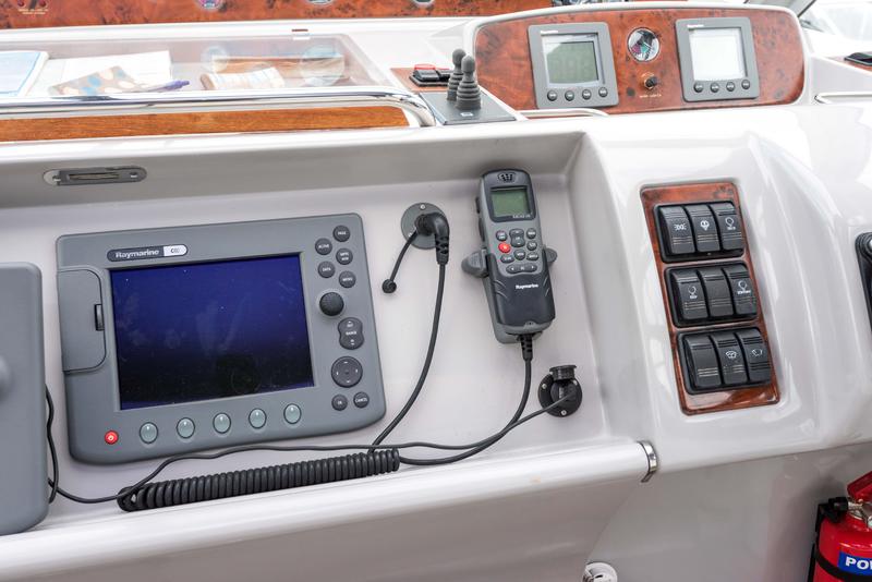 This boat has extremely high specification including bow and stern thrusters, a Volvo Penta D6 370HP engine, 4.5Kw Generator, hydraulic radar arch and Raymarine electronics including a C80 chart plotter.