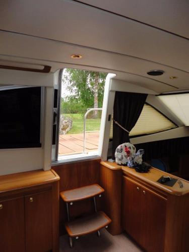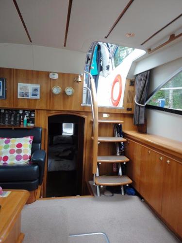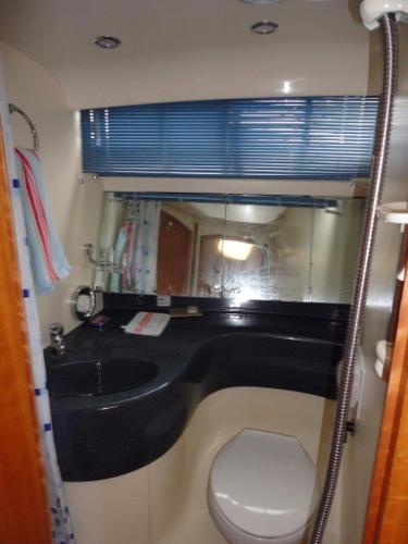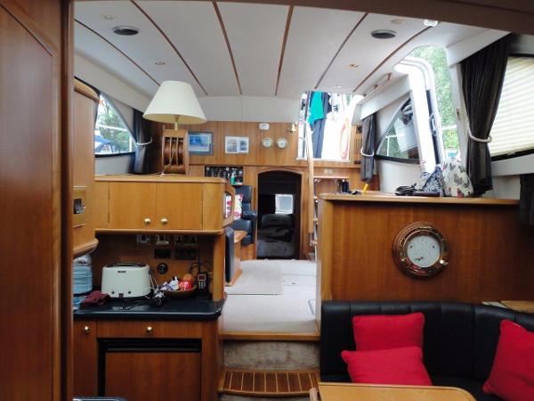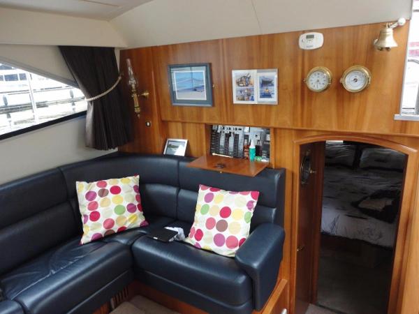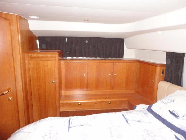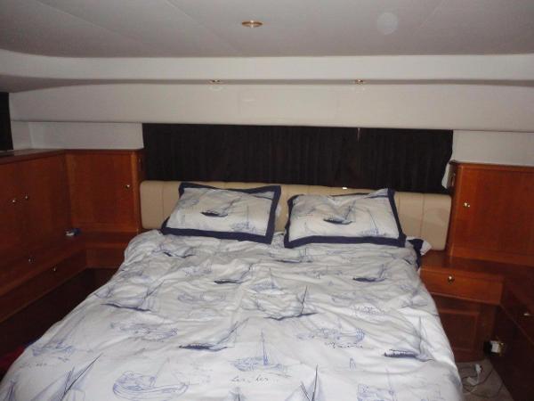 A very well specified example of this capable cruiser,Wintered indoors every year, fresh water use . An all round capable offshore boat at home on rivers and lakes as well Beautiful hand crafted finish Viewing recommended Accommodations AFT Cabin Double berth (centre) with storage lockers port & stbd.& under bed. Vanity mirror port. Shower room port. c/w teak /holly decking. Waterproof cabinet outboard. Heads & washbasin stbd. c/w teak/holly decking, cabinets outboard c/w mirrored doors. Hanging lockers port & stbd. Beige carpet to cabin. Storage locker stb with shelving and hanging space ( 12v + 240v outlets in this locker). Saloon Up steps to saloon. Fitted beige carpet. Electrical switch panel in bulkhead aft., Central vacuum under seating below, U shaped navy leather couch to stbd. Couch to stb has underneath pullout to create additional double berth. Storage space underneath all seating. Cherry wood lockers to port c/w built in Dehumidfier, Blaupunkt radio & CD changer, Wine rack & glass locker at side of steps (down) to dinette (port) Oceanair blinds fitted in saloon Galley U shaped galley stbd. Storage lockers on all sides & under deck. U shaped dinette to port with storage lockers outboard & underseat storage. Single pedestal (extendable) cherry wood table c/w rise & fall to create double berth. Forward shower and heads Heads/ shower to stbd with dual access (saloon & forward cabin). Cabinets outboard with mirrored doors. Forward cabin Forward cabin has 2 V shaped berths with storage below and at sides. Hanging lockers port & stbd.En Suite shower and heads (fitted bedding is available for all berths) Navigation Nav Lights Compass Raymarine C70 Chartplotter Garmin 551 Chartplotter Garmin GHC10 Autopilot linked via NMEA2000 with Garmin 551 ICOM VHF Plastimo compass Electrical systems 12 Volt system 2 Engine batteries mounted in enclosed vented cabinet between engines. 4 Domestic batteries (Trojan deep cycle,heavy duty) Fischer panda generator has independant battery 220 Volt system Shore power system with galvanic isolation 220v Outlets located 1 single in forward cabin 1 double + i single in galley 2 doubles in salon cabinet 1 single in storage cupboard (stbd) 1 single in aft cabin 1 waterproof single at helm 2 engine alternators Techpro 11 5000-6000 version 97 battery charger Water Systems Hot and cold pressurised water both shower and heads and shower on bathing platform Fresh water tank 454 litres Holding tank 54 litres Hot water tank with immersion 220V Domestic Equipment 3 burner gas hob with fiddle rails 3 x 4.5kg gas bottles supplied Panasonic Dimension 4 Combi oven ( oven / grill / microwave) Fridge (12/240v) under counter Double sink Electrolux extractor fan c/w light Heating 2 x Webasto Air Top 3000/5000 heating units (diesel) outlets in all cabins, saloon and upper helm. Integral built-in dehumidifier. Central vacuum system (Miele) Blackout curtains in all cabins & saloon Oceanair blinds fitted in saloon Deck Equipment Pulpit, side and pushpit rails in stainless steel. Boading gates each with 2 stainless steel chains. 2 double stainless steel fender baskets Stainless steel handrails on coachroof Helm area c/w al controls. 3 bucket style seats at helm. Additional U shaped seating area behind helm c/w extendable solid teak table. Waterproof storage lockers under all seats. Canopy to enclose all of helm area. Pram style folding canopy at helm. Radar arch c/w TV Aerial, horn, radar deflector VHF aerial Solid teak decking to all decks, swim platform & steps. Solid teak decking to helm area Galvanised plough anchor c/w 90 galvanised chain. Simpson anchor winch c/w foot controls at bow. 8 x stainless steel deck cleats. Swim platform with retractable telescopic stainless steel ladder. Cooney electric single post davits. Fenders c/w fender grip rope adjusters. Ropes Extendable boat hook Seago 4 man liferaft mounted on stern rails. Safety Equipment 2 X Seafire automatic fire extinguishers in Engine bay 1 large manual fire extinguisher at engine room access hatch 3 hand extinguishers ( 1 galley : 1 saloon : 1 helm) Fire blanket in galley Other Mechanical Nobels bow thruster 2 windscreen wipers with fresh water washers Hydraulic steering ( + emergency tiller) HIgh quality sound insulation in engine room Underwater exhaust from both engines 3 x submersible bilge pumps with float switches 1 manual whale gusher hand pump Tankage .Fuel tankage is 1260L water 452 L Manufacturer Provided Description Designed by Andrew Wolstenholme, the Broom 42cl is a good fast cruising seaboat which is capable of, and most suitable for, cruising the inland waterways of Europe. With the capability of speeds up to 28 knots and cruising speed well in excess of 22 knots, the 42 is a truly serious cruising boat with the excellent handling qualities, comfort, and superb finish on which Brooms have built their reputation. Disclaimer Disclaimer customContactInformation alan@mgmboats.com 00353(0)872287471